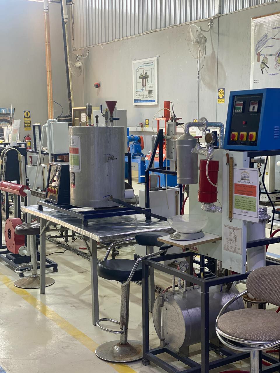 A thermodynamics lab is a facility where the laws governing energy, heat, and work transfer between systems—and their transformations in materials and physical processes—are studied. Experiments analyze the behavior of gases and liquids under varying conditions, such as heat cycles, heat engines, and refrigeration systems. It aims to understand fundamental energy principles and enhance conversion efficiency in engineering and industrial applications.