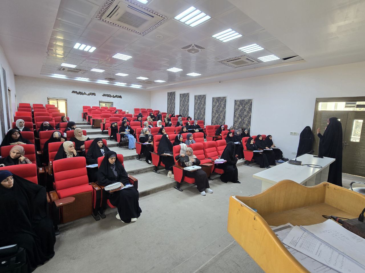 As part of the efforts made to enhance the missionary woman's role in society, Dr. Nour Al-Saedi, a lecturer at the College of Islamic Sciences at Warith Al-Anbiya University, met with first-year students from all departments on Monday 12/30/2024.