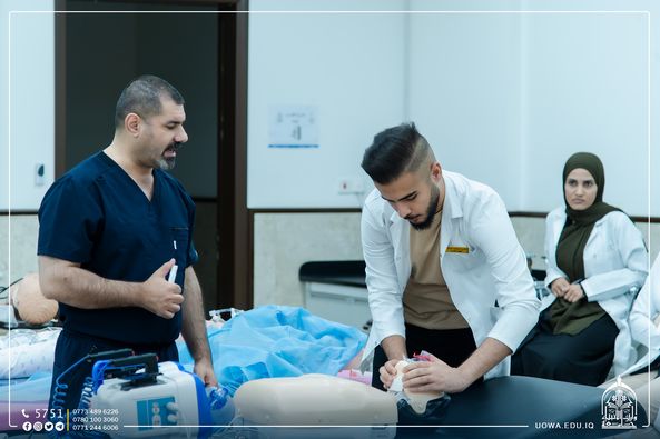 The first intensive training course for students of the Coolege of Medicine, in which the university hosted a number of doctors and specialists.Where this program will be repeated to include all studentsThis restriction to training 90 students for each course is to achieve training and good application of skills.