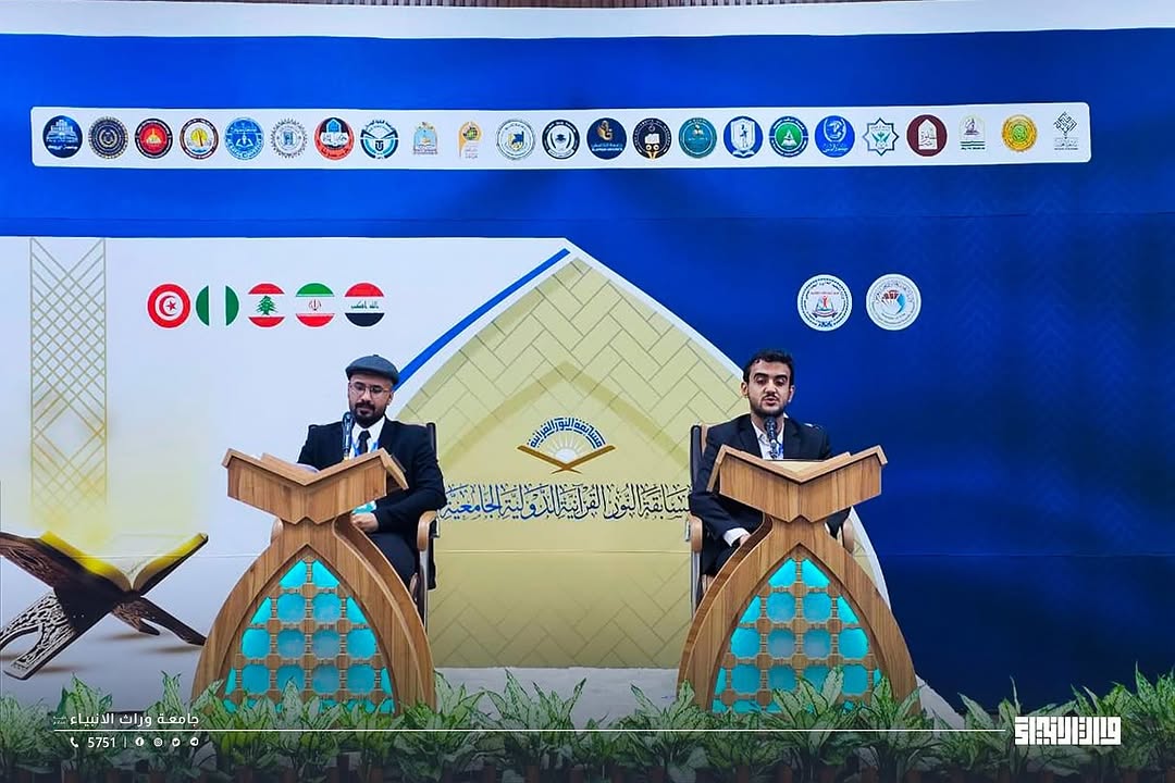 As part of Warith Al-Anbiya University's participation in the Al-Noor International University Quran Competition, organized by the Ministry of Higher Education and Scientific Research, with the participation of 53 Iraqi universities and 6 foreign universities from around the world, student Hafiz Muhammad Hassan Shamran from the College of Medicine won a distinguished award during the competition hosted by Al-Ameed University.