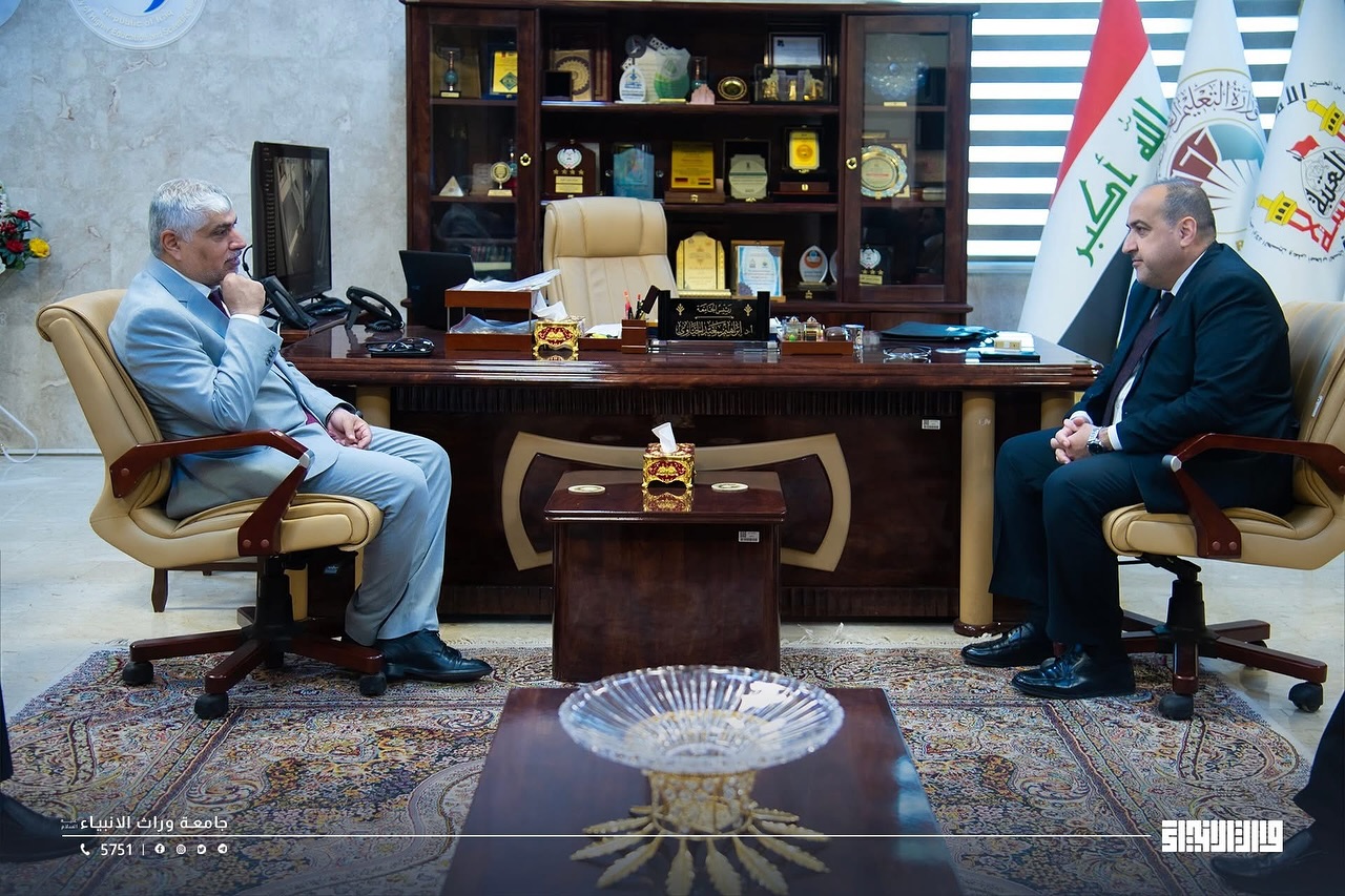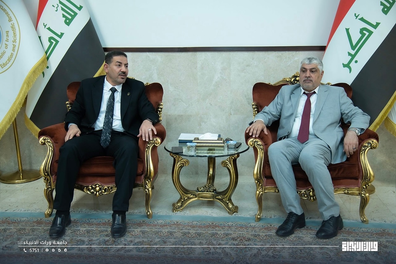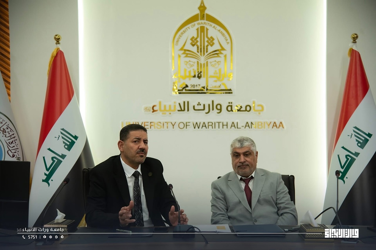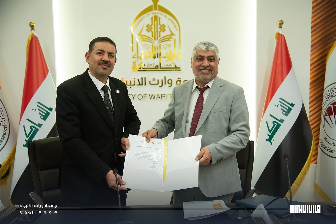 Within the framework of academic openness and strengthening cooperation between educational institutions, the President of Warith Al-Anbiya University, Professor Dr. Ibrahim Saeed Al-Hayawi, and the Dean of the College of Medicine, Professor Dr. Ali Abdul Saadoun, received a delegation from Hammurabi College of Medicine – University of Babylon, headed by the Dean of the College, Professor Dr. Hadi Al-Moussawi, in an official scientific visit during which a joint cooperation agreement was signed between the two sides. The agreement aims to develop the fields of medical education, scientific research, clinical training, and the exchange of academic expertise between the two colleges, thereby contributing to raising the level of medical education in Iraq and providing an integrated scientific environment that supports innovation and research.