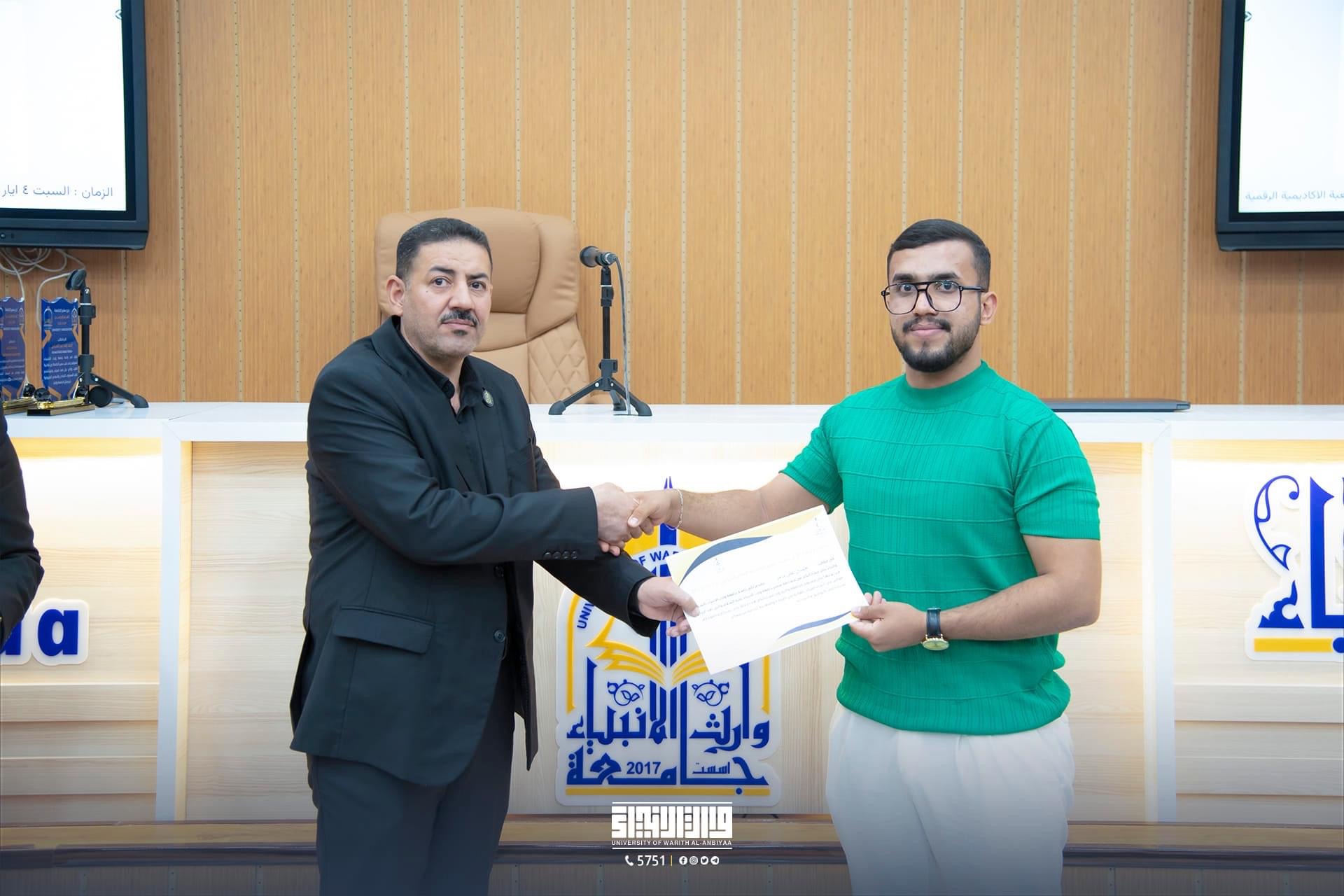 Under the patronage of the President of the University, Professor Dr. Ibrahim Saeed Al-Hayawi, and in the presence of the Dean of the Faculty of Medicine, Professor Dr. Ali Abd Saadoun Al-Ghazi, the Deanship of the Faculty of Medicine, in cooperation with the “Warith Elevate” team and the Department of Quality Assurance and University Performance, launched the project (Preparation and Selection of University Medical Ambassadors), which aims to represent the university and the country, whether locally or internationally.