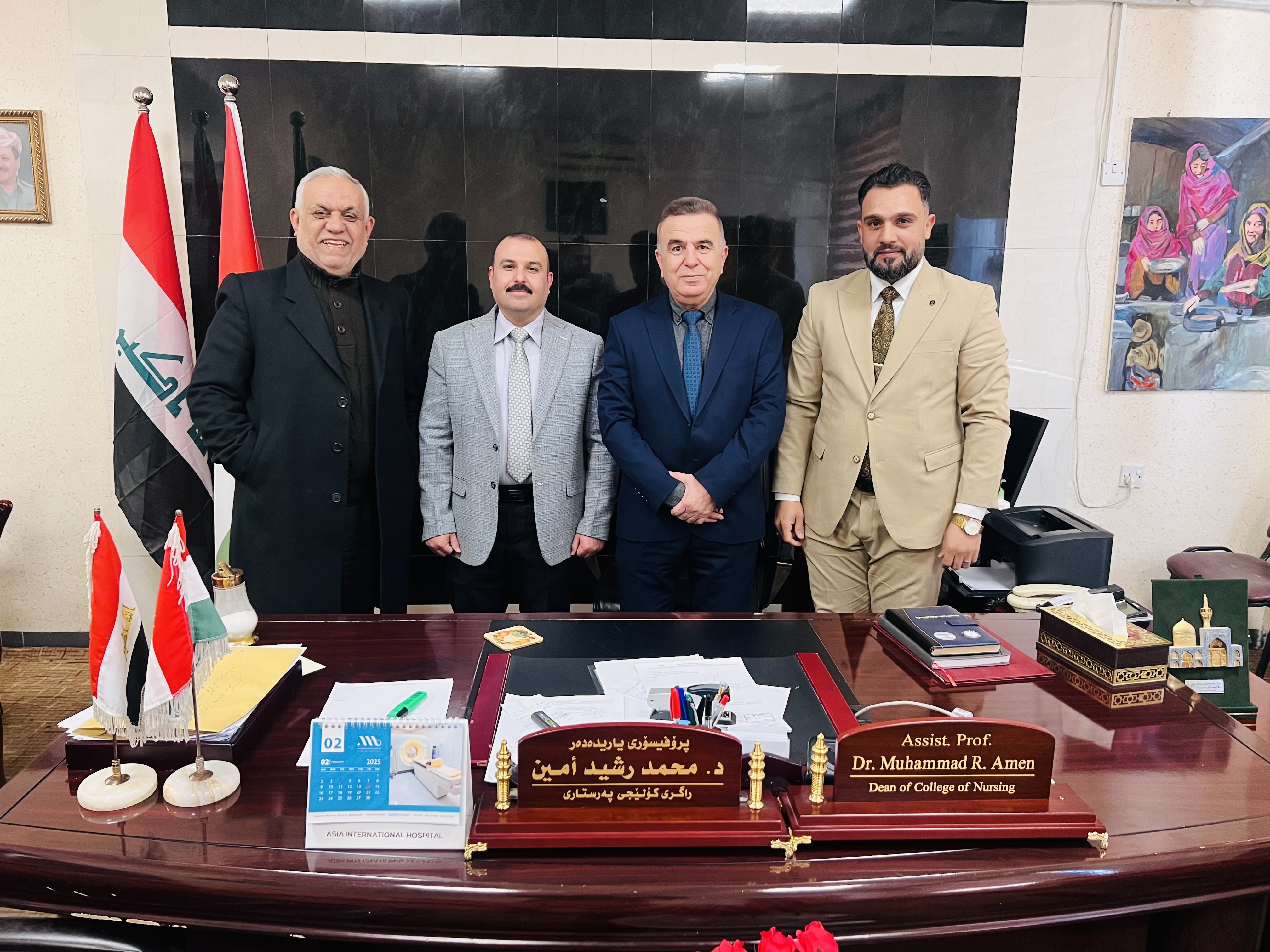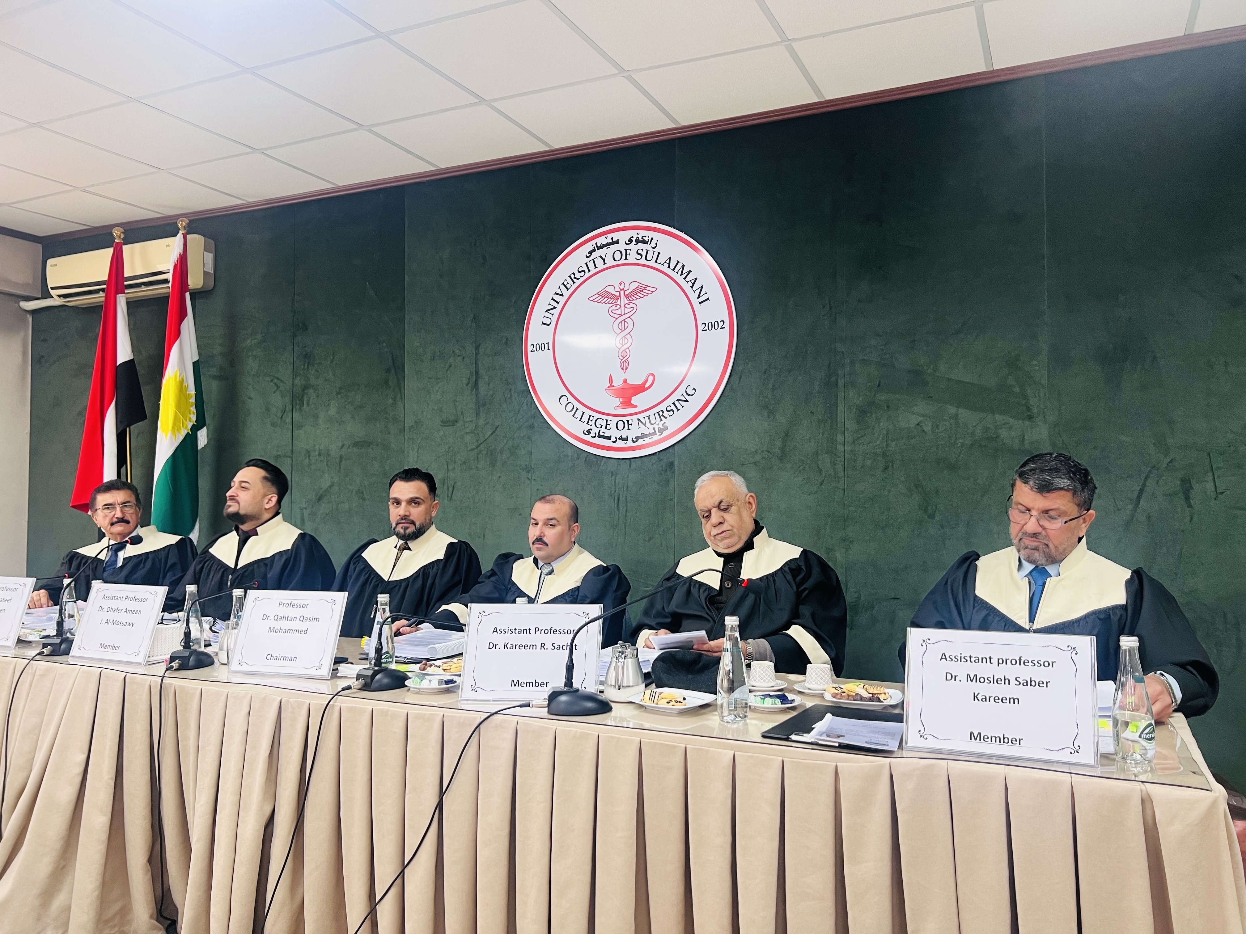 A lecturer from our university, College of Nursing (Assistant Professor Dhafer Amin Jabbar Al-Moussawi) was selected as a member to discuss the doctoral student (Lara Rashid Darwish) at the College of Nursing - University of Sulaymaniyah on her thesis entitled (The effect of the educational psychological program on the severity of symptoms among depression patients in the city of Sulaymaniyah, Iraq) on Thursday, February 27, 2025. The quasi-experimental study aimed to investigate the effect of the educational psychological program on reducing the severity of symptoms among depression patients, as well as their knowledge and commitment to treatment. The study concluded the effectiveness of the educational psychological program in reducing the severity of symptoms in patients with diseases and raising their level of knowledge and commitment to treatment through the presence of statistically significant differences in the measures used among patients in the experimental group compared to the control group. The study recommended the necessity of integrating the educational psychological program into the treatment plan for depression patients by health institutions.