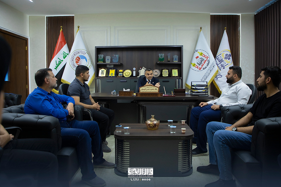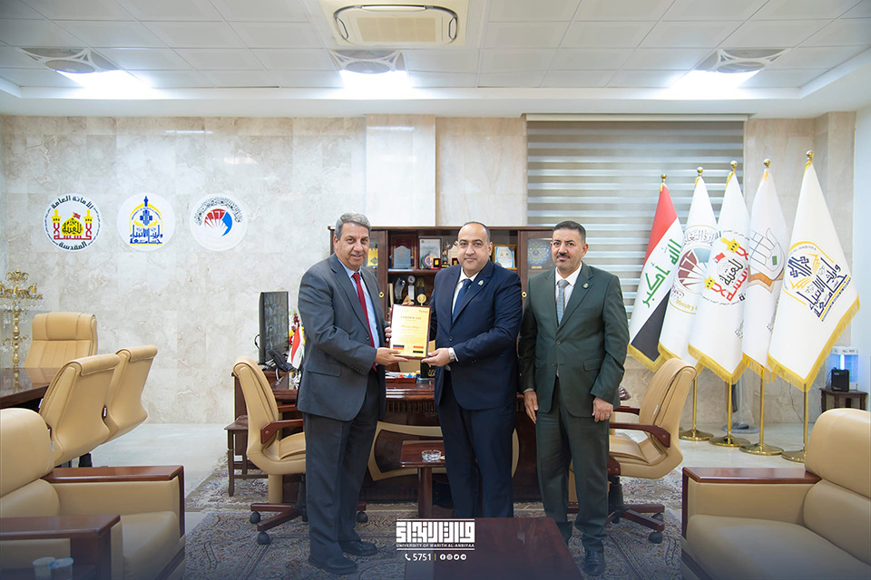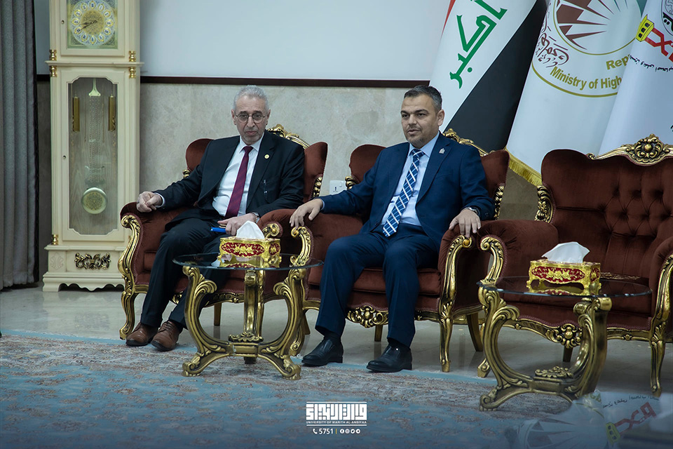 Professor Dr. Basem Al-Saeedi, the president of the University of Karbala, was met by Professor Dr. Ibrahim Al-Hayawi, the president of the university.