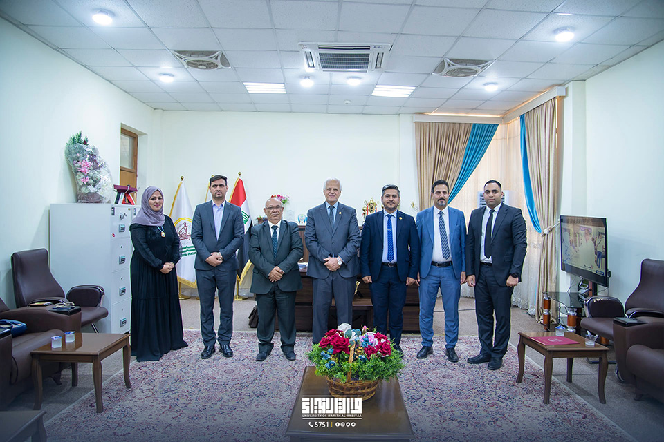 Professor Dr. Awad Al-Khalidi, Dean of the College of Administration and Economics, and his accompanying delegation congratulated and bestowed blessings on the Dean of the College of Engineering on the issuance of the ministerial order appointing Assistant Professor Dr. Hussein Hadi Al-Awadi to the Deanship of the College of Engineering. They also prayed to Allah Almighty for success and continued advancement in support of the scientific march in our beloved nation.