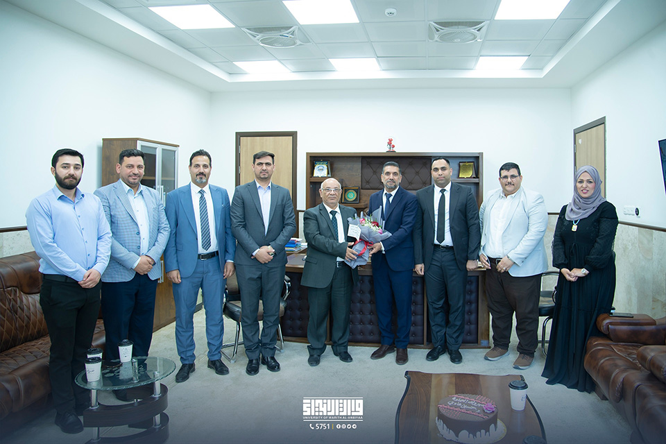 The Head of the Department of Media and Government Communications, Dr. Mahdi Al-Saadi, along with members of his media and relations team, congratulated and offered blessings to Assistant Professor Dr. Hussein Hadi Al-Awadi on his appointment as Dean of the College of Engineering. They also prayed to Allah Almighty for success and continued advancement in his service to the scientific process in our beloved nation.