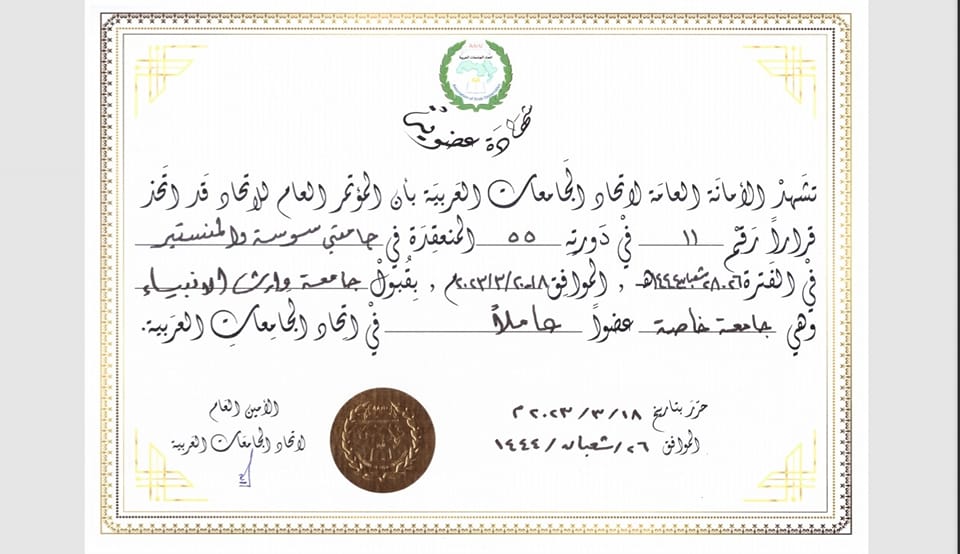 In a significant stride towards fostering collaboration and expanding its network, the University of Warith Al-Anbiyaa successfully secured membership in the Association of Arab Universities. This achievement reflects the university's commitment to enhancing connections with Arab and international academic institutions, as the association comprises numerous universities and educational establishments. The membership opens up avenues for fruitful partnerships and opportunities for mutual growth and development.