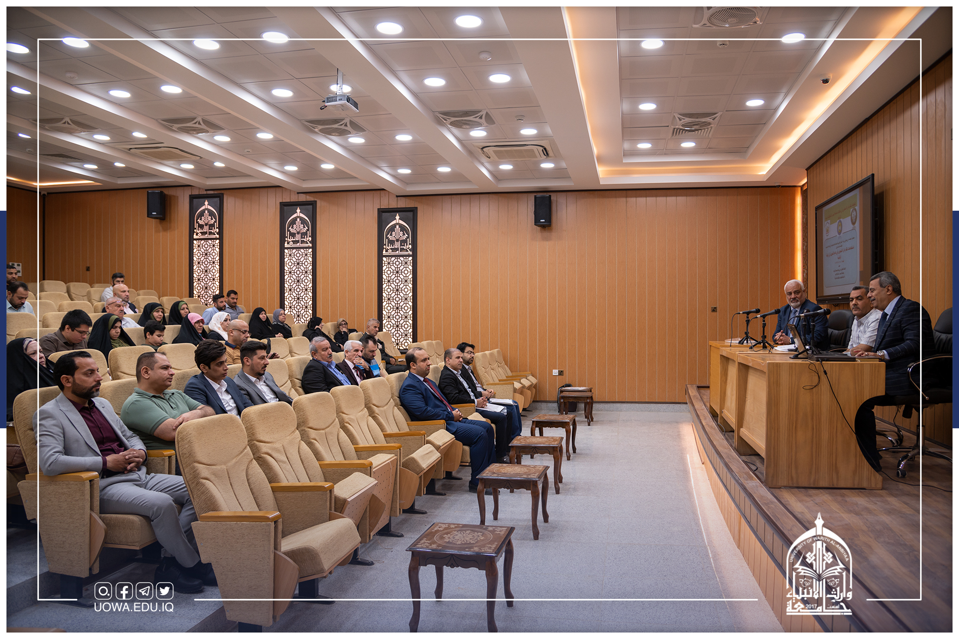 Under the patronage of the University President and the Academic Assistant, the College of Islamic Sciences at Warith Al-Anbiyaa University (peace be upon him) is organizing a workshop titled "The Impact of Drugs on Mental, Social Security, and the Social System." The workshop will be held at 10:00 AM on Monday in the auditorium located in the Al-Ali Building within the university. The invitation is open to everyone.